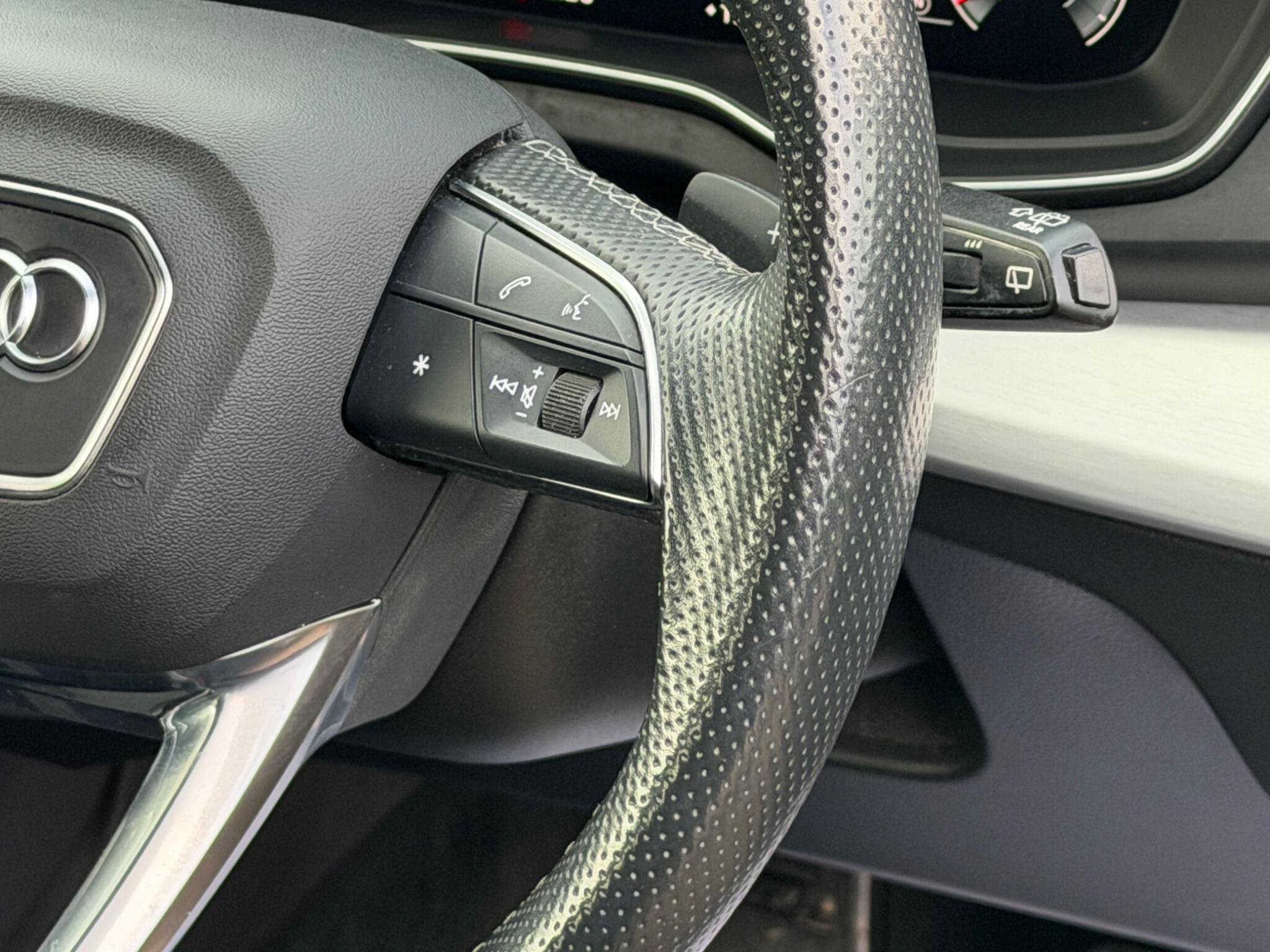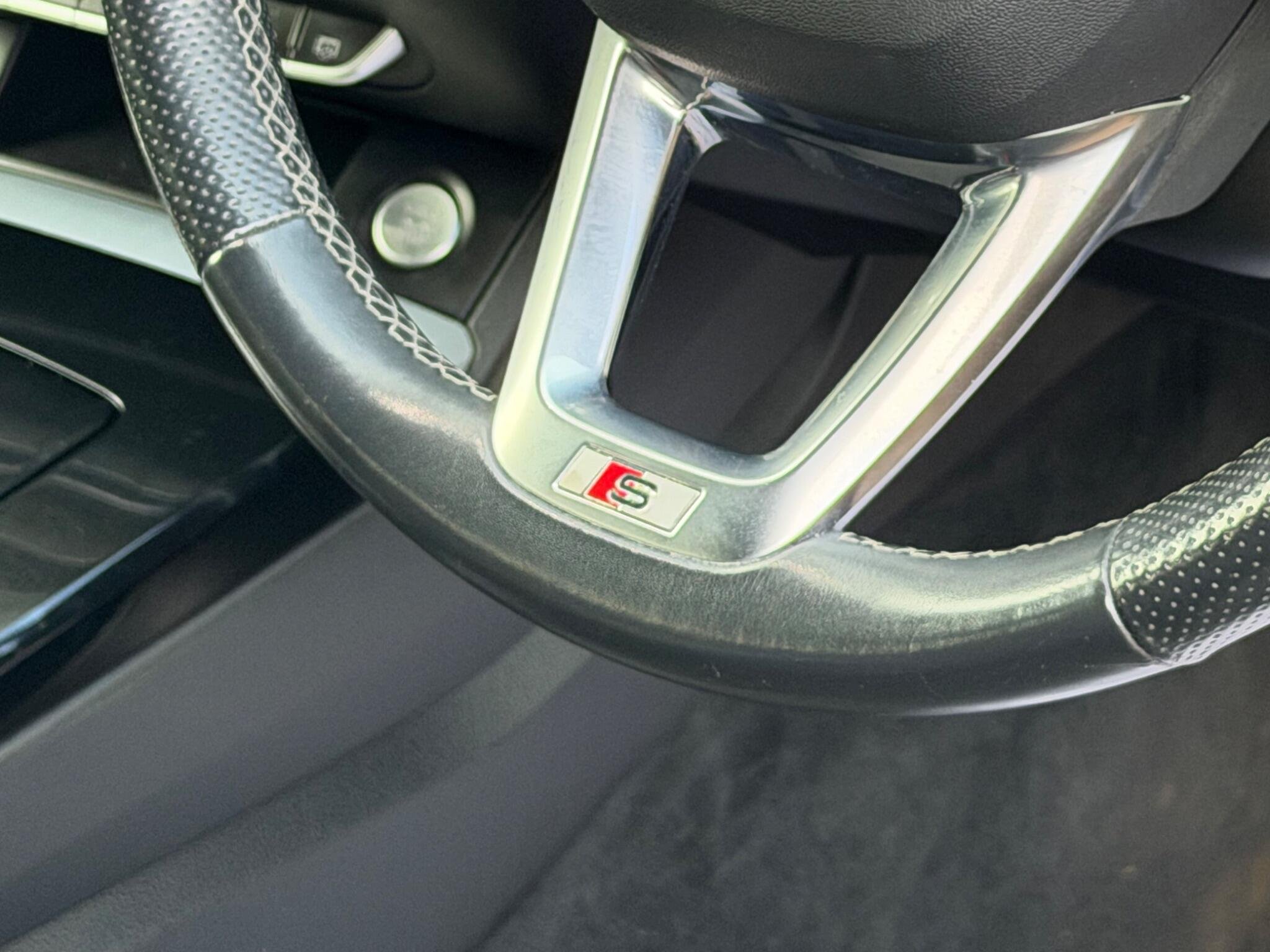 - 3-Spoke Multi-Function Leather Steering Wheel with Grips in Perforated Leather and S Badging