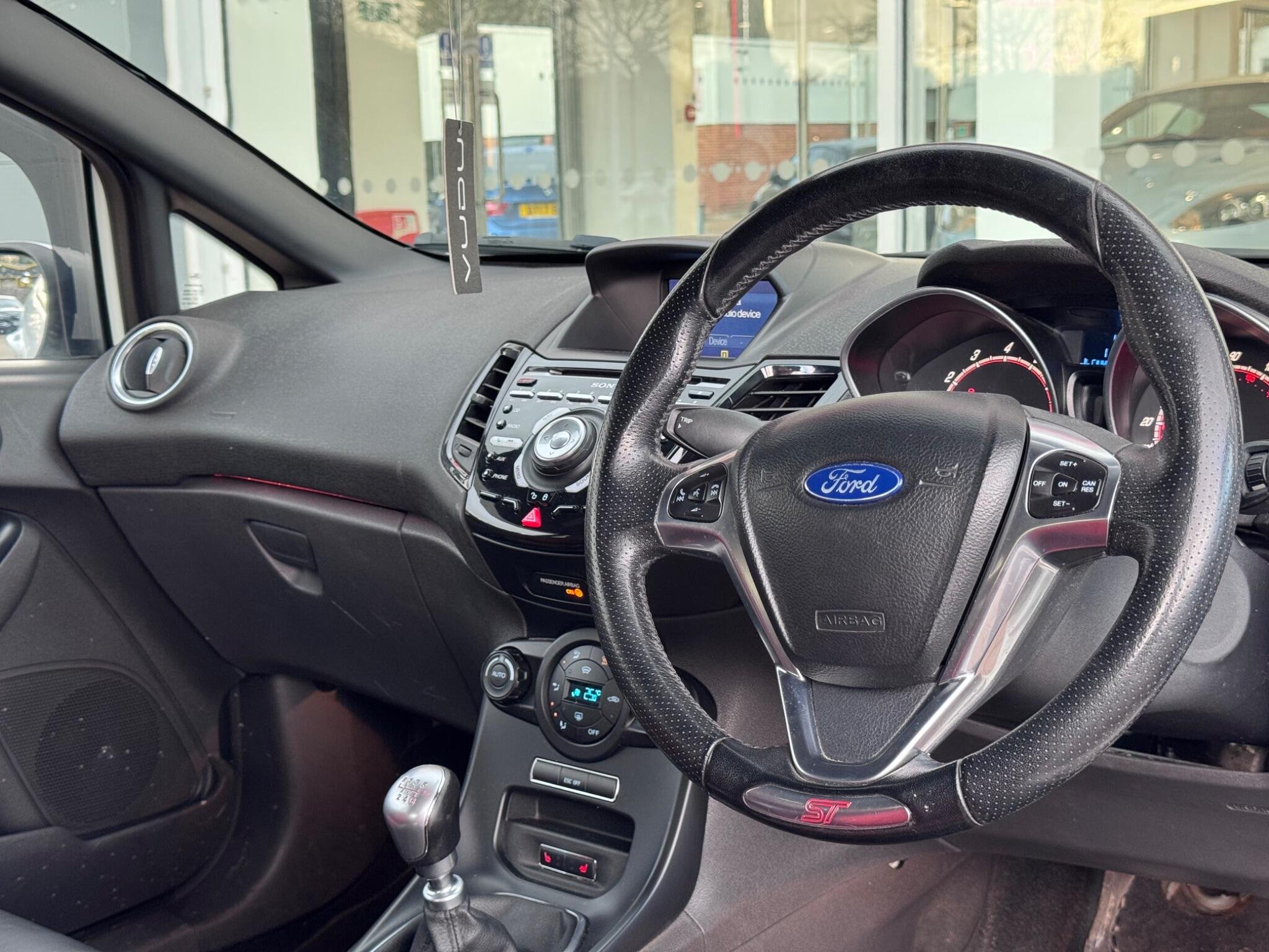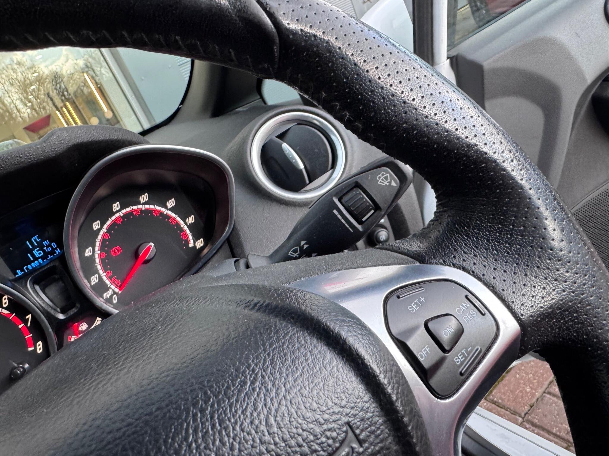 This 2014 Ford Fiesta ST-2 boasts a clear vehicle history, offering you peace of mind. This sporty hatchback is powered by a lively 1.6L petrol engine and features the desirable ST-2 trim. It comes equipped with the Convenience Pack, which includes keyless entry, and the ST Style Pack, enhancing its already dynamic appearance. You'll also find practical additions like rear parking sensors for easier manoeuvring and cruise control for more relaxed journeys, all complemented by stylish 17 inch metallic grey alloy wheels. Experience exhilarating performance with this Fiesta ST-2, capable of accelerating from 0 to 62mph in a swift 6.9 seconds. This impressive acceleration figure demonstrates its sporting prowess, setting it apart from many other vehicles in its class. The combination of its engaging driving dynamics, thoughtful features, and strong performance makes this Ford Fiesta ST-2 a compelling choice for those seeking a spirited and well equipped compact car. -